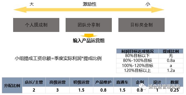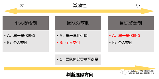 W君是某公司的HRBP,前几天突然跟我聊起,最近老板给他出了一个新难题:构建集团的激励体系。从他的语气里我听出了一些无奈,首先老板就一句“构建激励体系”把任务派下去了;其次,他自己也没有一下子冒出好的思路去与老板探讨,以求得更加明确的目标。就这样,这个问题困扰了他好几天,直到那天我们见面时还在毫无头绪中。 其实跟W君类似的困惑,我在不少HR同仁口中都听到过。有过管理学基础知识储备的伙伴应该知道,一般所说的激励可以分为“物质激励”和“非物质激励”,也可以分为“正向激励”和“负向激励”。那么对于负责薪酬绩效的HR来说,最容易下手的地方是“物质激励”(比如工资、奖金、股权、福利等等),最最容易下手的地方则是绩效奖金方案。所以,今天想给大家安利一张笔者所在团队原创的绩效奖金策略选择模型。 理论上讲,绩效奖金策略的制定需要根据根公司战略、公司发展阶段、以及岗位特征综合考虑确定。公司战略决定什么岗位是关键核心岗位,公司的发展阶段、文化则决定如何激励岗位上的人员。 在实际操作中,特别是在已有的薪酬体系(或激励体系、薪酬绩效体系)上做优化时,我们更多需要从不同岗位的特点出发。此时可以尝试根据上图所示的路径去思考。为了便于理解,先做名词解释↓↓↓ 单一量化价值:指该岗位能否对企业战略发展、经营中的收入、成本、费用、利润、效率等财务性指标产生直接且明确的影响。 个人交付:指该岗位上的个人能否独立对产出的最终结果负责,而不受其他岗位的产出影响,且产出结果能够对战略或经营目标的实现有直接支撑作用。 团队内部贡献可衡量:能否对每个团队成员对最终结果的影响程度能够清晰衡量,是否能避免大锅饭的情况。 明确概念之后,再看激励方案怎么选。对照上图,我们给出了一般选择路径——从左到右,依次判断,方案设计者可据此做出选择。比如,电商公司最核心的运营岗位,其主要职责是通过平台运营、方案策划、数据分析等方式达成公司的销售/利润目标,可见其完全满足“单一量化价值”的条件。 要想选用个人提成的方式,还得看第二个条件——“个人交付”。对于运营岗位来说,虽然对销售目标/利润直接负责,但目标的达成并非运营一个岗位就能完成的,他还需要美工、直通车、活动策划等岗位的配合与协助。故无法满足“个人交付”的条件。此时,则可以退一步选择团队分享的模式。 团队分享模式下还需要考虑第三个条件——“团队内部贡献可衡量”,即在运营+美工+直通车推广组成的团队中,有没有明确的规则可以衡量出不同岗位的贡献大小,如果没有则可能产生提成分配的大锅饭。故在选择此模式时须建立明确的内部分配规则。 对于另外一些诸如人事、财务、行政等职能型岗位,其工作无法“单一量化价值”,故常采用的激励方式为“目标奖金制”。 在实际操作中,激励方案的选择并非一成不变,而是要根据实际情况进行变通处理。同样用电商举例,很多公司对于“美工”这个岗位的激励也很是苦恼,对这个岗位业绩的好坏找不到明确的评价标准,因为大家对于“美”的认知是“仁者见仁智者见智”,而且不同的电商平台对美工岗位的业绩产出数据支撑程度不同,天猫会有强大的数据支撑,比如静默转化率、跳失率、页面访问时长等,而京东、拼多多、唯品会等平台就没有那么强大的数据支撑了,甚至有些平台几乎没有任何数据来反映页面做的好不好、主图、详情做得好不好。如何对“美工”岗位进行激励呢?我们在某电商公司的激励方案设计中则经历了以下不断更迭换代的过程。 出于激励力度最大化的考虑,项目组成员建议美工的激励方案采用内部自由接单式的“个人提成制”,即对公司所需的各种设计图进行定价,由运营发布任务,美工自由接单,最终奖金根据个人完成并交付运营认可的设计图数量计算。 很快,方案1.0在团队讨论中被推翻了,主要原因在于公司对设计图的要求较为复杂且时限较短,大多设计图须多名美工相互配合才能快速完成,此类情况较难区分个人贡献,可能造成内部争议。 于是衍生出了方案2.0——内部外包式的“团队提成制”。还是一样的对设计图进行分类、定价。只不过提成从计算到个人变成了团队二次分配的模式,即团队奖金=团队虚拟利润=∑(一个周期内所有设计图的单价×数量-团队人工成本-团队其他管理成本)。团队成员的个人奖金根据个人的能力级别、团队配合程度进等行分配,即个人奖金=团队奖金×(个人分配系数/团队成员分配系数之和)。 然而,在方案设计思路沟通过程中,方案2.0也出问题了。原因在公司现阶还未形成此方实施落地的土壤。其一,公司美工团队暂无合适的负责人,无法做到设计任务的高效分配与协调,且暂未形成美工评级的流程与机制;其二,各类设计图定价较为困难,外部定价规则不尽相同,无可供参考的标杆,即便设计出合理的定价标准,现有员工依然会基于自我认知进行外部对比。经探讨决定,此方案不太适用于现阶段。 于是又衍生除了方案3.0——编入产品运营组式的“团队提成制”。将美工与运营团队捆绑,直接从该团队产生的经营业绩中提成。在该公司的方案中,我们选择了用“营业利润”作为提成基数。即团队提成=该产品运营团队季度实际利润×提成比例。个人的提成